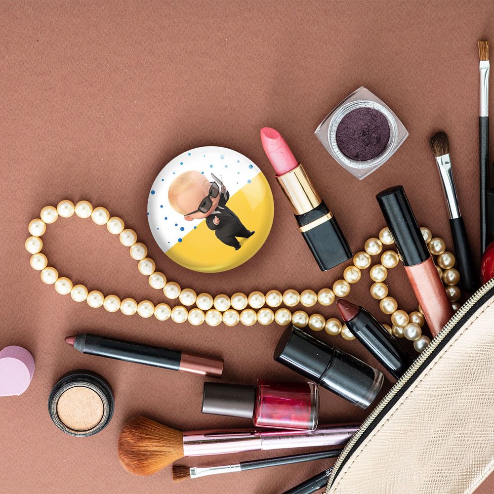 آینه های جیبی بچه رئیس Boss Baby خندالو دایره ای به قطر 7.5 سانتی متر می باشد که نه خیلی بزرگ و غیر قابل استفاده در کیف آرایشی ست و نه خیلی کوچک که تصویر خاصی در آن مشاهده نشود. سایزی استاندارد و کارآمد دارد و مناسب قرار گیری در کیف لوازم آرایش و کیف های کوچک دستی نیز هست.
