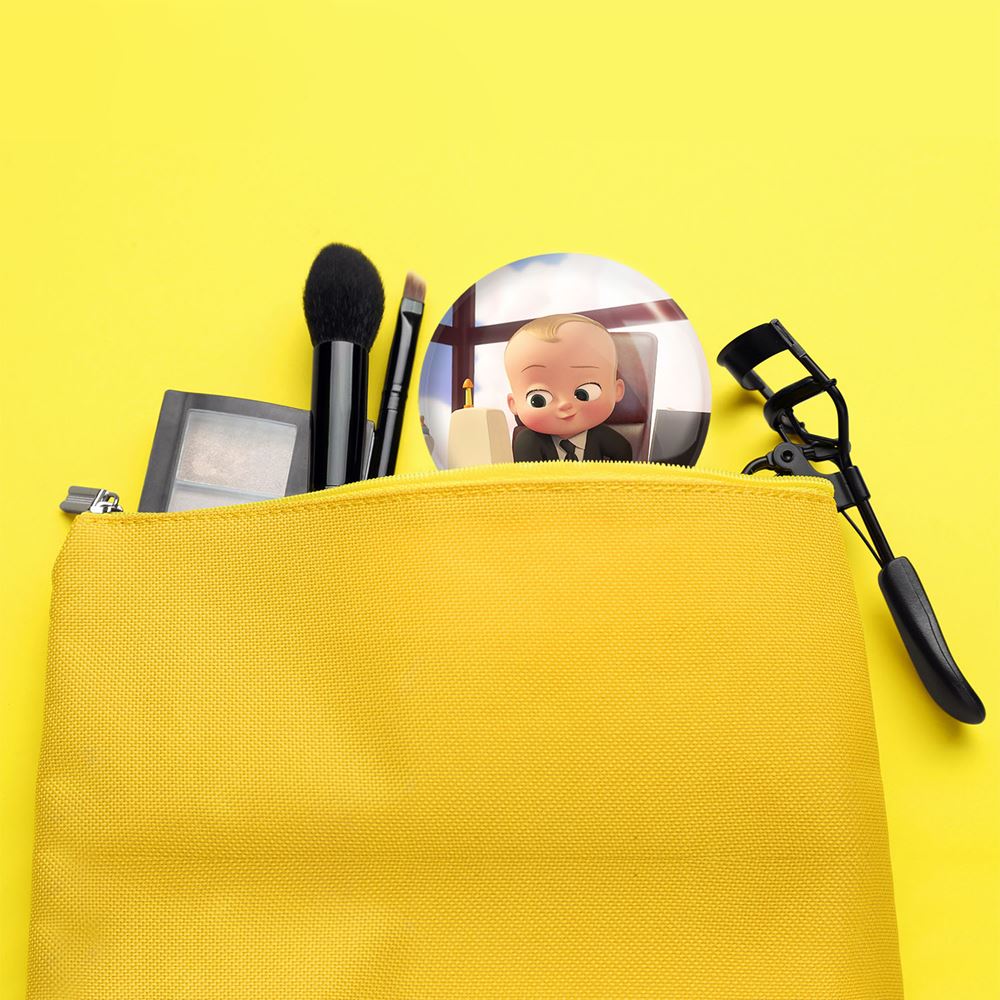 آینه های جیبی بچه رئیس Boss Baby خندالو دایره ای به قطر 7.5 سانتی متر می باشد که نه خیلی بزرگ و غیر قابل استفاده در کیف آرایشی ست و نه خیلی کوچک که تصویر خاصی در آن مشاهده نشود. سایزی استاندارد و کارآمد دارد و مناسب قرار گیری در کیف لوازم آرایش و کیف های کوچک دستی نیز هست.