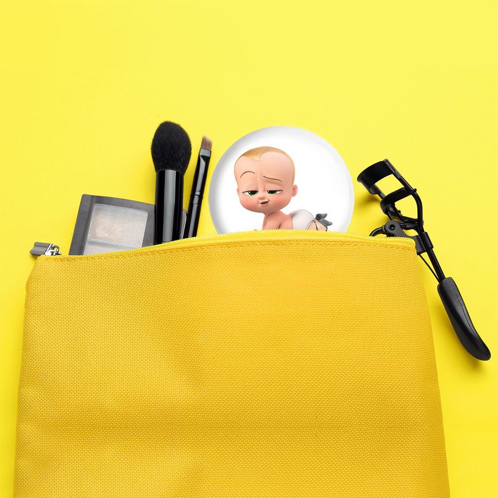 آینه های جیبی بچه رئیس Boss Baby خندالو دایره ای به قطر 7.5 سانتی متر می باشد که نه خیلی بزرگ و غیر قابل استفاده در کیف آرایشی ست و نه خیلی کوچک که تصویر خاصی در آن مشاهده نشود. سایزی استاندارد و کارآمد دارد و مناسب قرار گیری در کیف لوازم آرایش و کیف های کوچک دستی نیز هست.