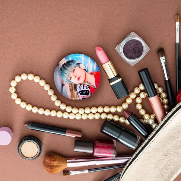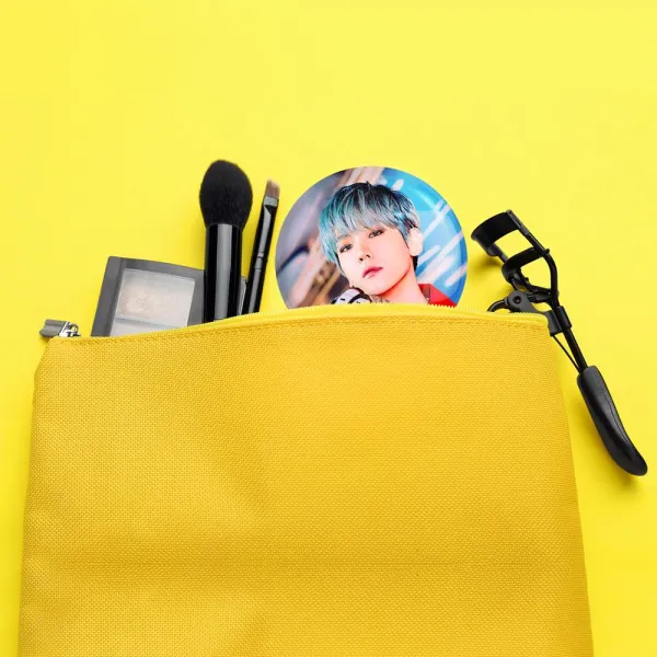 آینه های جیبی بکهیون گروه اکسو EXO خندالو دایره ای به قطر 7.5 سانتی متر می باشد که نه خیلی بزرگ و غیر قابل استفاده در کیف آرایشی ست و نه خیلی کوچک که تصویر خاصی در آن مشاهده نشود. سایزی استاندارد و کارآمد دارد و مناسب قرار گیری در کیف لوازم آرایش و کیف های کوچک دستی نیز هست.