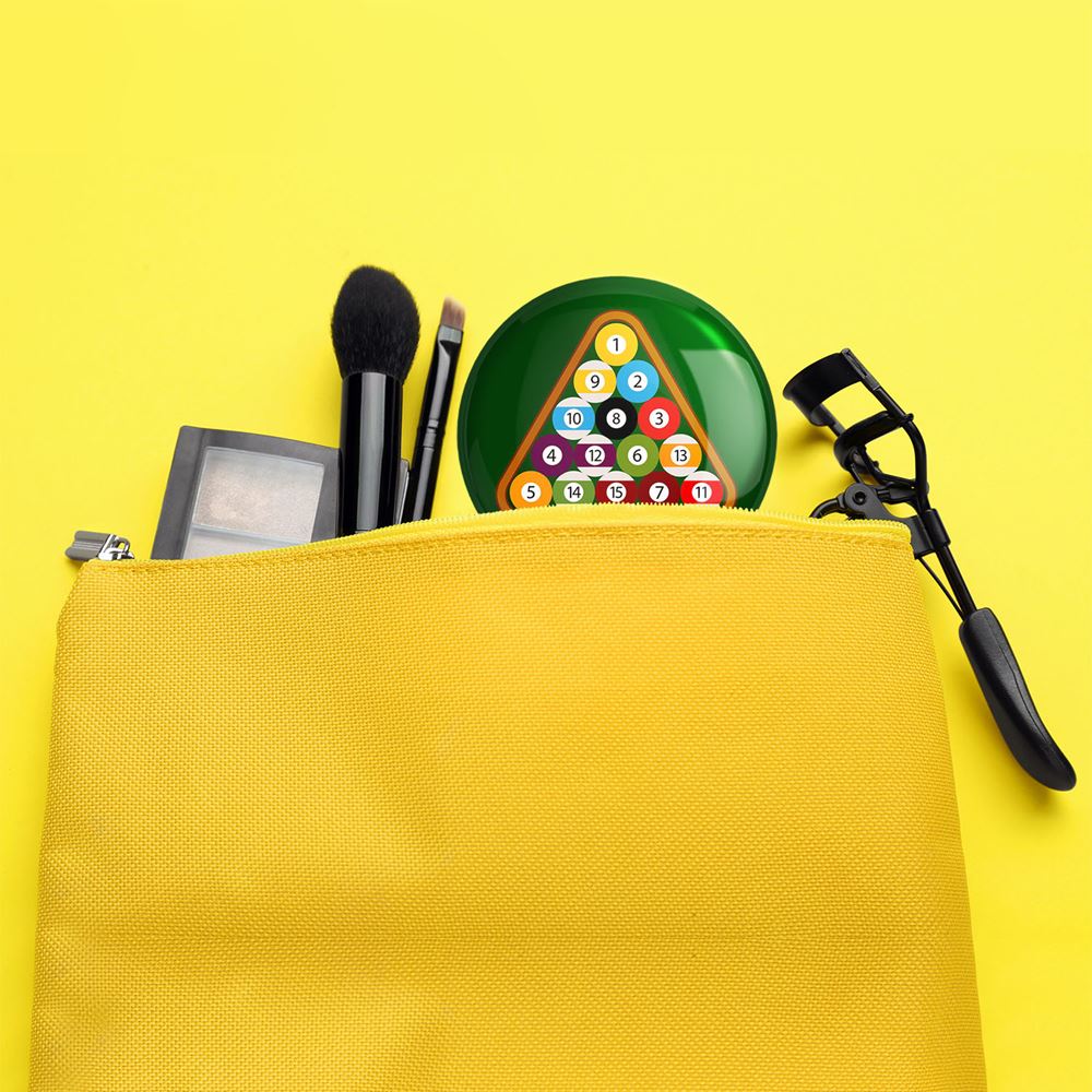 آینه های جیبی بیلیارد Billiard خندالو دایره ای به قطر 7.5 سانتی متر می باشد که نه خیلی بزرگ و غیر قابل استفاده در کیف آرایشی ست و نه خیلی کوچک که تصویر خاصی در آن مشاهده نشود. سایزی استاندارد و کارآمد دارد و مناسب قرار گیری در کیف لوازم آرایش و کیف های کوچک دستی نیز هست.