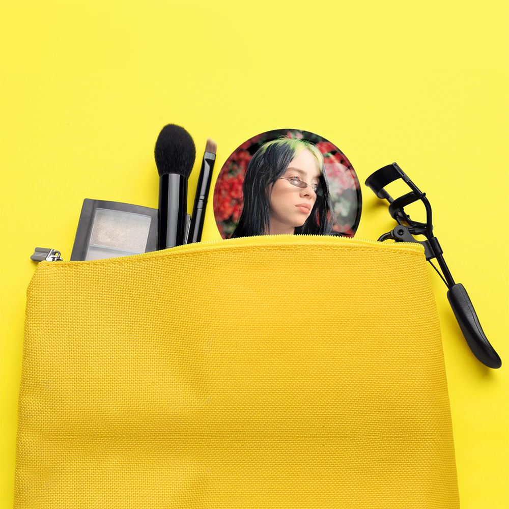 آینه های جیبی بیلی آیلیش Billie Eilish خندالو دایره ای به قطر 7.5 سانتی متر می باشد که نه خیلی بزرگ و غیر قابل استفاده در کیف آرایشی ست و نه خیلی کوچک که تصویر خاصی در آن مشاهده نشود. سایزی استاندارد و کارآمد دارد و مناسب قرار گیری در کیف لوازم آرایش و کیف های کوچک دستی نیز هست.