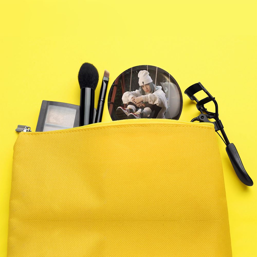 آینه های جیبی بیلی آیلیش Billie Eilish خندالو دایره ای به قطر 7.5 سانتی متر می باشد که نه خیلی بزرگ و غیر قابل استفاده در کیف آرایشی ست و نه خیلی کوچک که تصویر خاصی در آن مشاهده نشود. سایزی استاندارد و کارآمد دارد و مناسب قرار گیری در کیف لوازم آرایش و کیف های کوچک دستی نیز هست.
