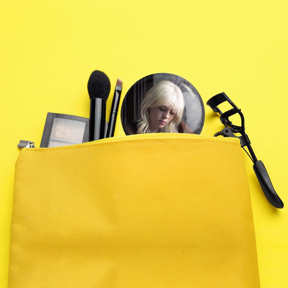 آینه های جیبی بیلی آیلیش Billie Eilish خندالو دایره ای به قطر 7.5 سانتی متر می باشد که نه خیلی بزرگ و غیر قابل استفاده در کیف آرایشی ست و نه خیلی کوچک که تصویر خاصی در آن مشاهده نشود. سایزی استاندارد و کارآمد دارد و مناسب قرار گیری در کیف لوازم آرایش و کیف های کوچک دستی نیز هست.