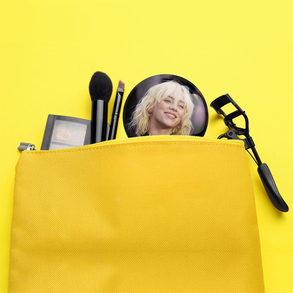 آینه های جیبی بیلی آیلیش Billie Eilish خندالو دایره ای به قطر 7.5 سانتی متر می باشد که نه خیلی بزرگ و غیر قابل استفاده در کیف آرایشی ست و نه خیلی کوچک که تصویر خاصی در آن مشاهده نشود. سایزی استاندارد و کارآمد دارد و مناسب قرار گیری در کیف لوازم آرایش و کیف های کوچک دستی نیز هست.