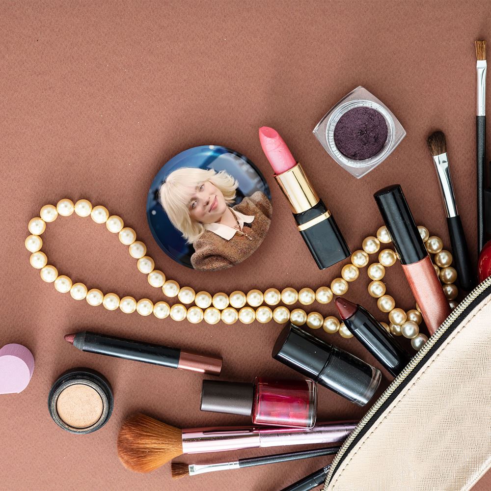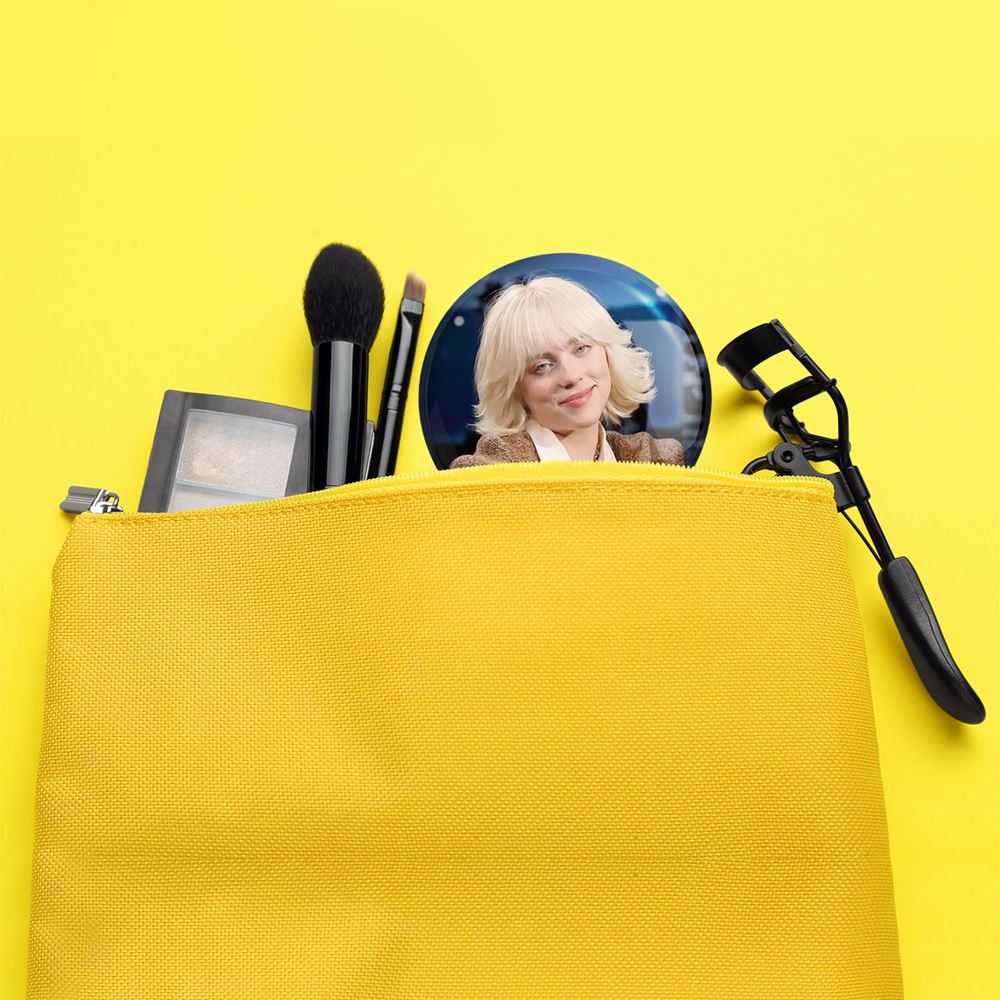 آینه های جیبی بیلی آیلیش Billie Eilish خندالو دایره ای به قطر 7.5 سانتی متر می باشد که نه خیلی بزرگ و غیر قابل استفاده در کیف آرایشی ست و نه خیلی کوچک که تصویر خاصی در آن مشاهده نشود. سایزی استاندارد و کارآمد دارد و مناسب قرار گیری در کیف لوازم آرایش و کیف های کوچک دستی نیز هست.