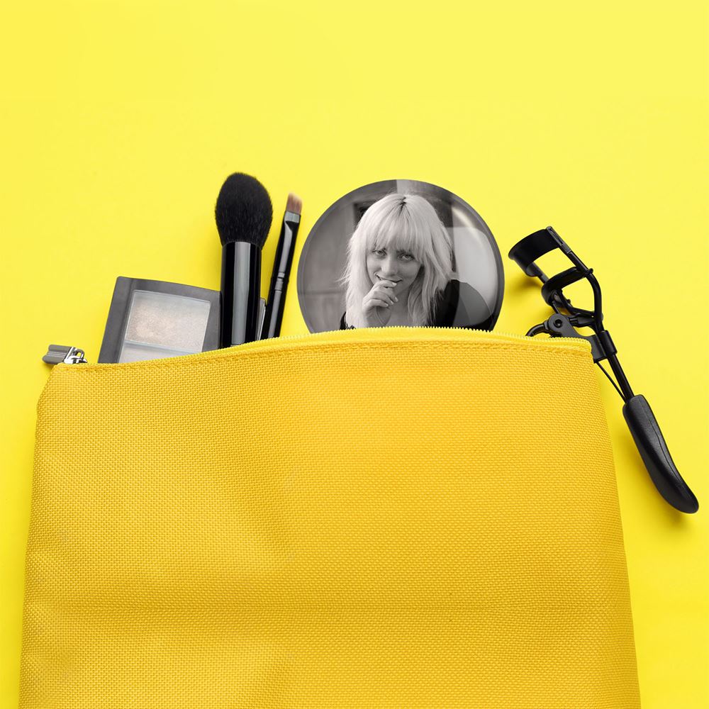آینه های جیبی بیلی آیلیش Billie Eilish خندالو دایره ای به قطر 7.5 سانتی متر می باشد که نه خیلی بزرگ و غیر قابل استفاده در کیف آرایشی ست و نه خیلی کوچک که تصویر خاصی در آن مشاهده نشود. سایزی استاندارد و کارآمد دارد و مناسب قرار گیری در کیف لوازم آرایش و کیف های کوچک دستی نیز هست.