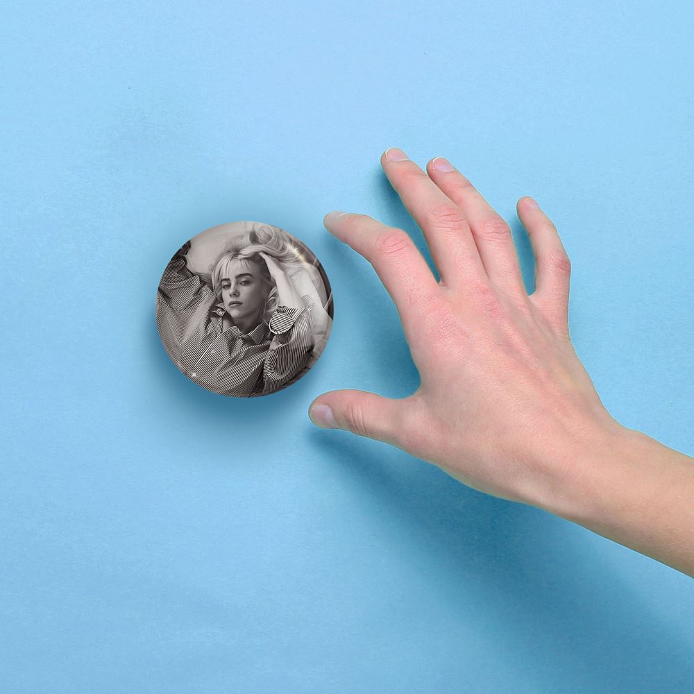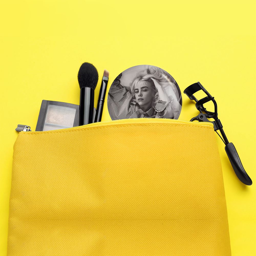 آینه های جیبی بیلی آیلیش Billie Eilish خندالو دایره ای به قطر 7.5 سانتی متر می باشد که نه خیلی بزرگ و غیر قابل استفاده در کیف آرایشی ست و نه خیلی کوچک که تصویر خاصی در آن مشاهده نشود. سایزی استاندارد و کارآمد دارد و مناسب قرار گیری در کیف لوازم آرایش و کیف های کوچک دستی نیز هست.