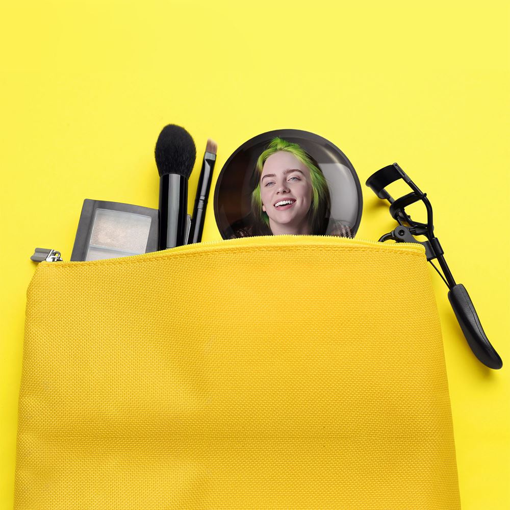 آینه های جیبی بیلی آیلیش Billie Eilish خندالو دایره ای به قطر 7.5 سانتی متر می باشد که نه خیلی بزرگ و غیر قابل استفاده در کیف آرایشی ست و نه خیلی کوچک که تصویر خاصی در آن مشاهده نشود. سایزی استاندارد و کارآمد دارد و مناسب قرار گیری در کیف لوازم آرایش و کیف های کوچک دستی نیز هست.