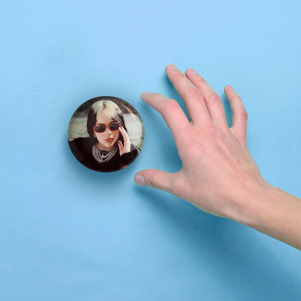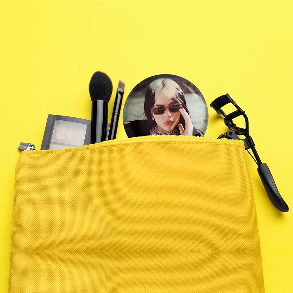 آینه های جیبی بیلی آیلیش Billie Eilish خندالو دایره ای به قطر 7.5 سانتی متر می باشد که نه خیلی بزرگ و غیر قابل استفاده در کیف آرایشی ست و نه خیلی کوچک که تصویر خاصی در آن مشاهده نشود. سایزی استاندارد و کارآمد دارد و مناسب قرار گیری در کیف لوازم آرایش و کیف های کوچک دستی نیز هست.