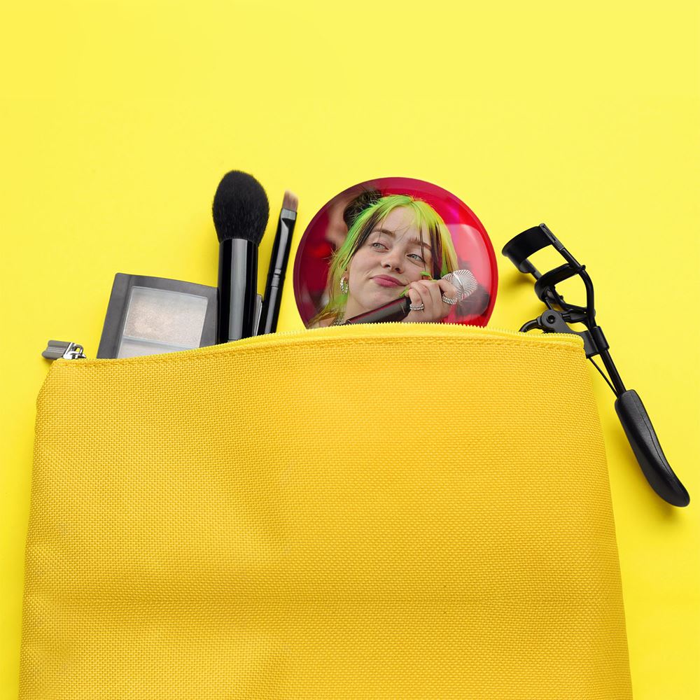 آینه های جیبی بیلی آیلیش Billie Eilish خندالو دایره ای به قطر 7.5 سانتی متر می باشد که نه خیلی بزرگ و غیر قابل استفاده در کیف آرایشی ست و نه خیلی کوچک که تصویر خاصی در آن مشاهده نشود. سایزی استاندارد و کارآمد دارد و مناسب قرار گیری در کیف لوازم آرایش و کیف های کوچک دستی نیز هست.