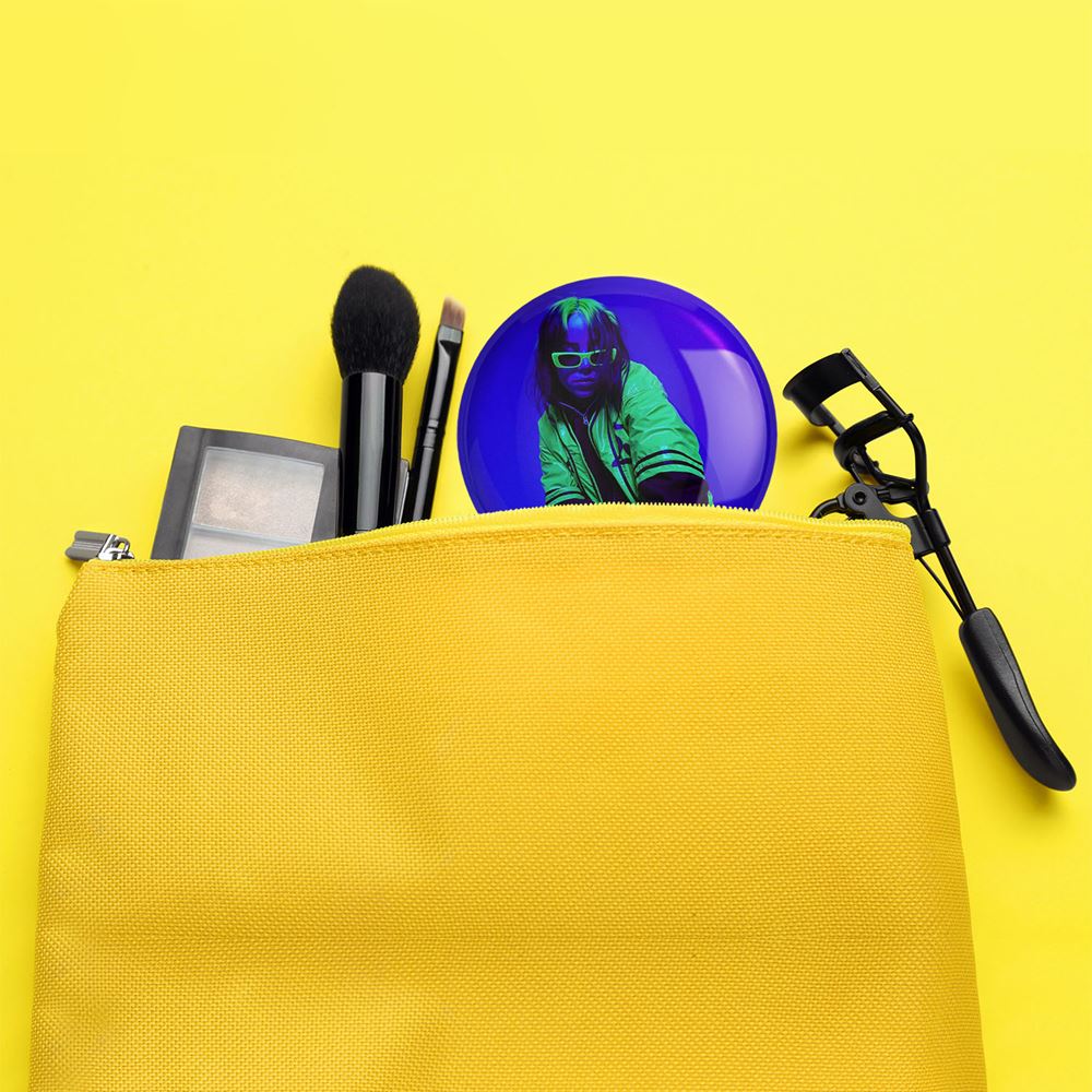 آینه های جیبی بیلی آیلیش Billie Eilish خندالو دایره ای به قطر 7.5 سانتی متر می باشد که نه خیلی بزرگ و غیر قابل استفاده در کیف آرایشی ست و نه خیلی کوچک که تصویر خاصی در آن مشاهده نشود. سایزی استاندارد و کارآمد دارد و مناسب قرار گیری در کیف لوازم آرایش و کیف های کوچک دستی نیز هست.