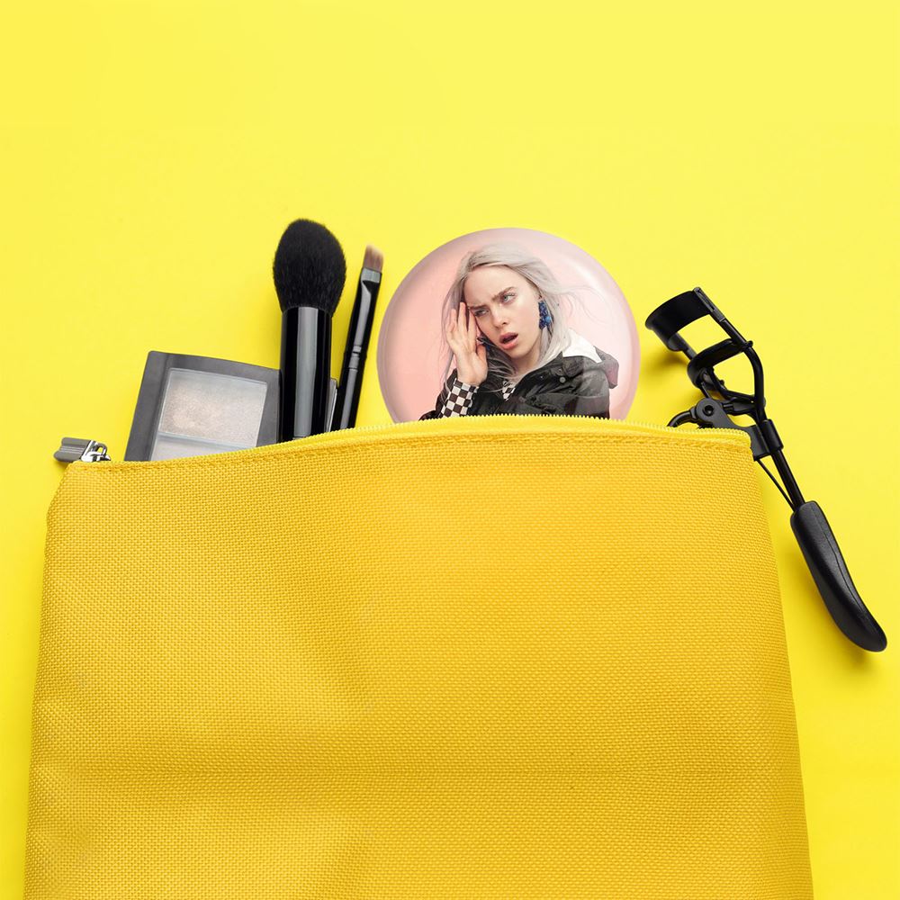 آینه های جیبی بیلی آیلیش Billie Eilish خندالو دایره ای به قطر 7.5 سانتی متر می باشد که نه خیلی بزرگ و غیر قابل استفاده در کیف آرایشی ست و نه خیلی کوچک که تصویر خاصی در آن مشاهده نشود. سایزی استاندارد و کارآمد دارد و مناسب قرار گیری در کیف لوازم آرایش و کیف های کوچک دستی نیز هست.