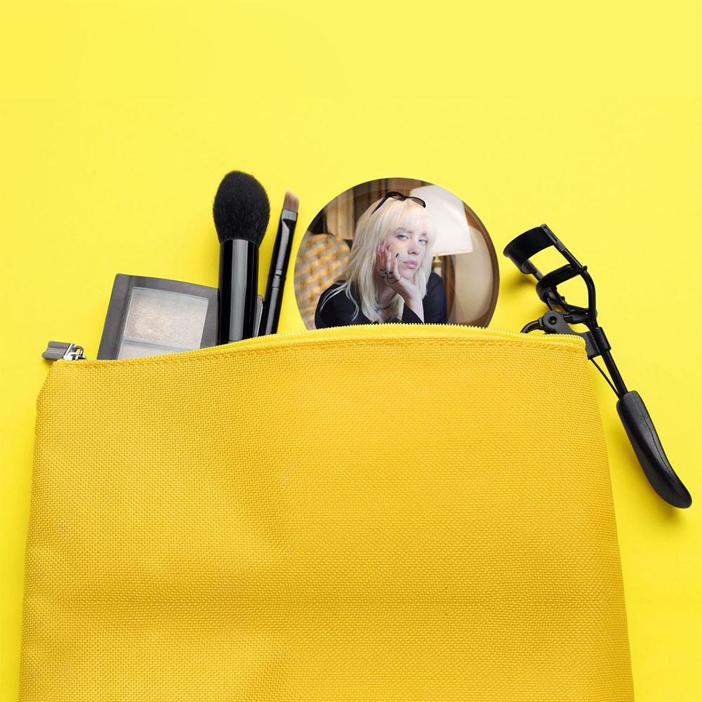 آینه های جیبی بیلی آیلیش Billie Eilish خندالو دایره ای به قطر 7.5 سانتی متر می باشد که نه خیلی بزرگ و غیر قابل استفاده در کیف آرایشی ست و نه خیلی کوچک که تصویر خاصی در آن مشاهده نشود. سایزی استاندارد و کارآمد دارد و مناسب قرار گیری در کیف لوازم آرایش و کیف های کوچک دستی نیز هست.