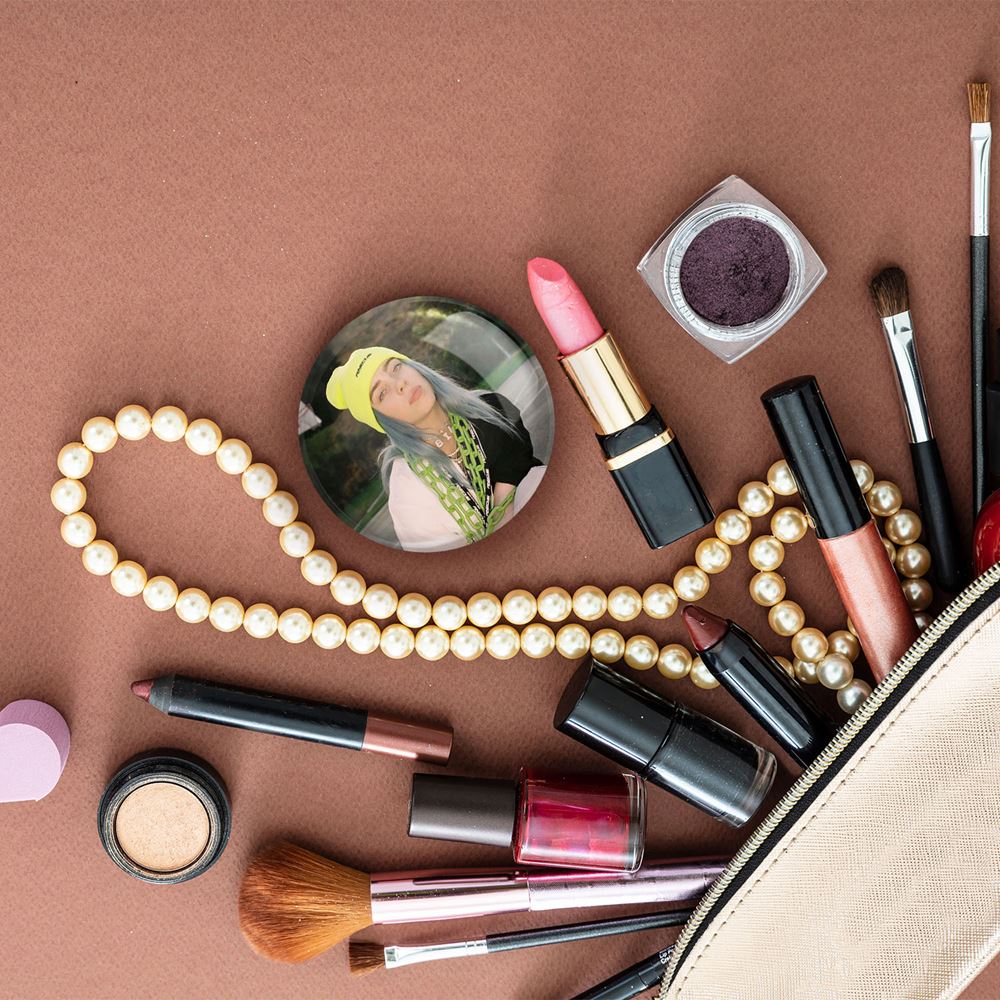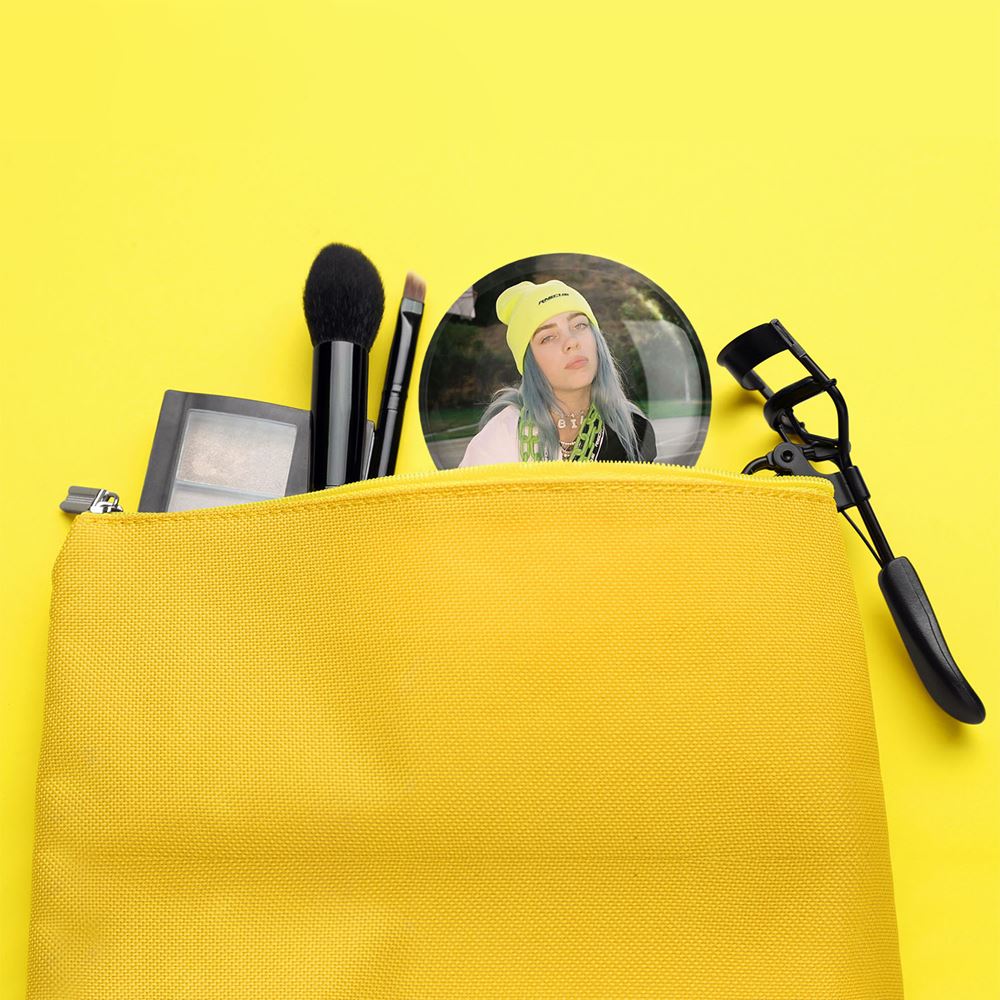 آینه های جیبی بیلی آیلیش Billie Eilish خندالو دایره ای به قطر 7.5 سانتی متر می باشد که نه خیلی بزرگ و غیر قابل استفاده در کیف آرایشی ست و نه خیلی کوچک که تصویر خاصی در آن مشاهده نشود. سایزی استاندارد و کارآمد دارد و مناسب قرار گیری در کیف لوازم آرایش و کیف های کوچک دستی نیز هست.