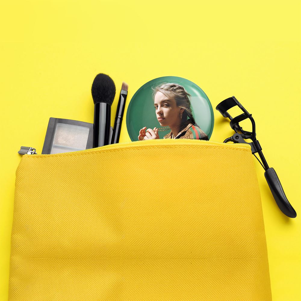 آینه های جیبی بیلی آیلیش Billie Eilish خندالو دایره ای به قطر 7.5 سانتی متر می باشد که نه خیلی بزرگ و غیر قابل استفاده در کیف آرایشی ست و نه خیلی کوچک که تصویر خاصی در آن مشاهده نشود. سایزی استاندارد و کارآمد دارد و مناسب قرار گیری در کیف لوازم آرایش و کیف های کوچک دستی نیز هست.