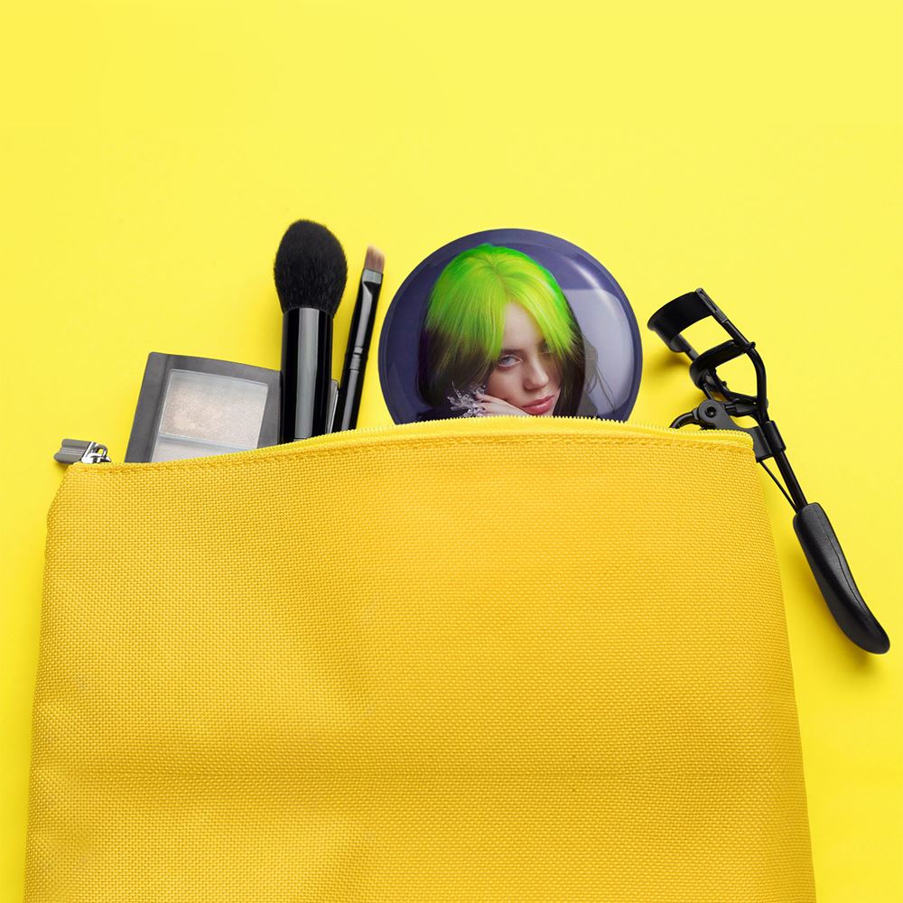 آینه های جیبی بیلی آیلیش Billie Eilish خندالو دایره ای به قطر 7.5 سانتی متر می باشد که نه خیلی بزرگ و غیر قابل استفاده در کیف آرایشی ست و نه خیلی کوچک که تصویر خاصی در آن مشاهده نشود. سایزی استاندارد و کارآمد دارد و مناسب قرار گیری در کیف لوازم آرایش و کیف های کوچک دستی نیز هست.