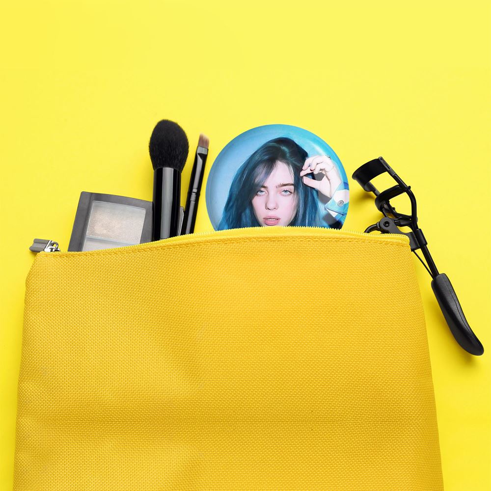 آینه های جیبی بیلی آیلیش Billie Eilish خندالو دایره ای به قطر 7.5 سانتی متر می باشد که نه خیلی بزرگ و غیر قابل استفاده در کیف آرایشی ست و نه خیلی کوچک که تصویر خاصی در آن مشاهده نشود. سایزی استاندارد و کارآمد دارد و مناسب قرار گیری در کیف لوازم آرایش و کیف های کوچک دستی نیز هست.