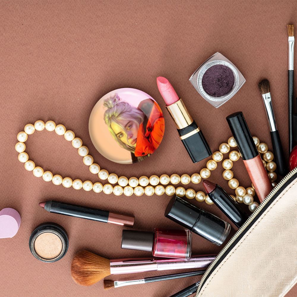 آینه های جیبی بیلی آیلیش Billie Eilish خندالو دایره ای به قطر 7.5 سانتی متر می باشد که نه خیلی بزرگ و غیر قابل استفاده در کیف آرایشی ست و نه خیلی کوچک که تصویر خاصی در آن مشاهده نشود. سایزی استاندارد و کارآمد دارد و مناسب قرار گیری در کیف لوازم آرایش و کیف های کوچک دستی نیز هست.