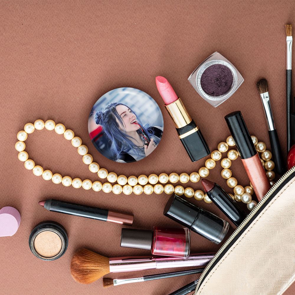 آینه های جیبی بیلی آیلیش Billie Eilish خندالو دایره ای به قطر 7.5 سانتی متر می باشد که نه خیلی بزرگ و غیر قابل استفاده در کیف آرایشی ست و نه خیلی کوچک که تصویر خاصی در آن مشاهده نشود. سایزی استاندارد و کارآمد دارد و مناسب قرار گیری در کیف لوازم آرایش و کیف های کوچک دستی نیز هست.