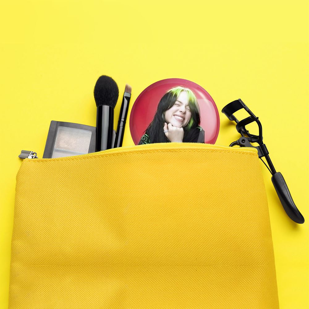 آینه های جیبی بیلی آیلیش Billie Eilish خندالو دایره ای به قطر 7.5 سانتی متر می باشد که نه خیلی بزرگ و غیر قابل استفاده در کیف آرایشی ست و نه خیلی کوچک که تصویر خاصی در آن مشاهده نشود. سایزی استاندارد و کارآمد دارد و مناسب قرار گیری در کیف لوازم آرایش و کیف های کوچک دستی نیز هست.