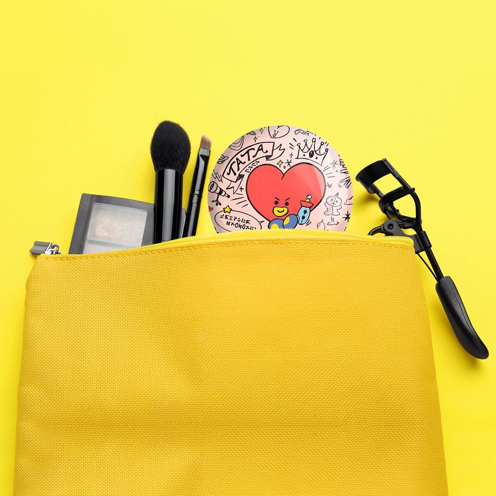 آینه های جیبی تاتا BT21 Tata خندالو دایره ای به قطر 7.5 سانتی متر می باشد که نه خیلی بزرگ و غیر قابل استفاده در کیف آرایشی ست و نه خیلی کوچک که تصویر خاصی در آن مشاهده نشود. سایزی استاندارد و کارآمد دارد و مناسب قرار گیری در کیف لوازم آرایش و کیف های کوچک دستی نیز هست.