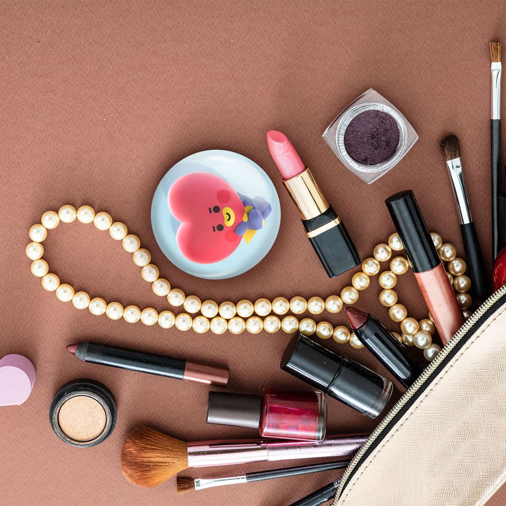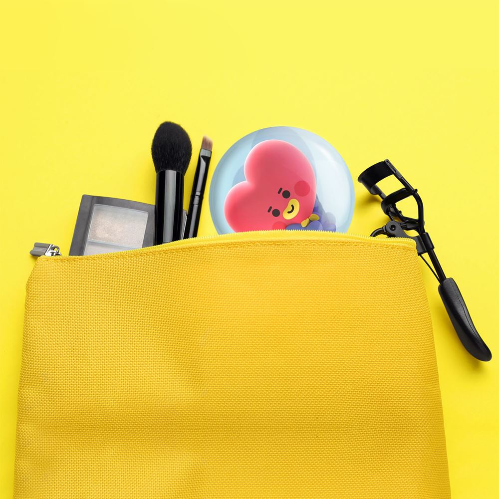 آینه های جیبی تاتا BT21 Tata خندالو دایره ای به قطر 7.5 سانتی متر می باشد که نه خیلی بزرگ و غیر قابل استفاده در کیف آرایشی ست و نه خیلی کوچک که تصویر خاصی در آن مشاهده نشود. سایزی استاندارد و کارآمد دارد و مناسب قرار گیری در کیف لوازم آرایش و کیف های کوچک دستی نیز هست.