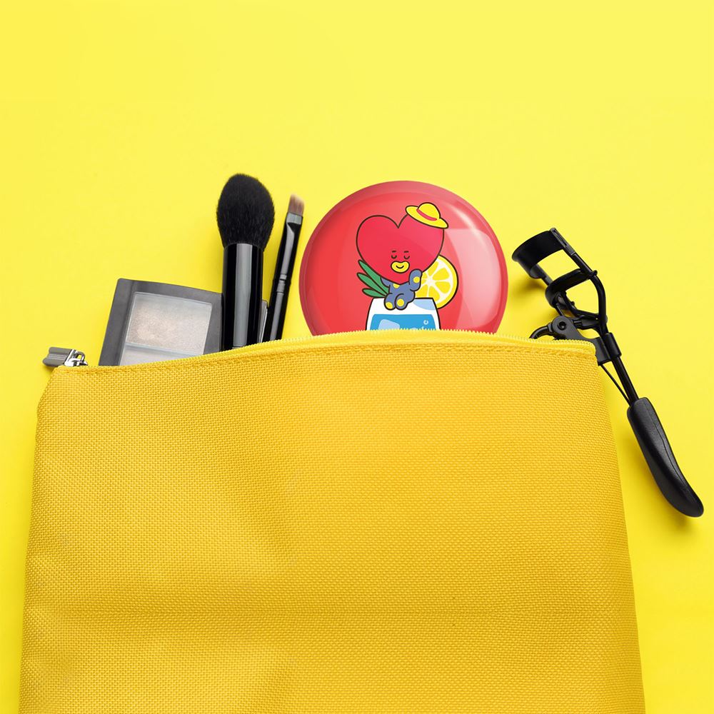 آینه های جیبی تاتا BT21 Tata خندالو دایره ای به قطر 7.5 سانتی متر می باشد که نه خیلی بزرگ و غیر قابل استفاده در کیف آرایشی ست و نه خیلی کوچک که تصویر خاصی در آن مشاهده نشود. سایزی استاندارد و کارآمد دارد و مناسب قرار گیری در کیف لوازم آرایش و کیف های کوچک دستی نیز هست.