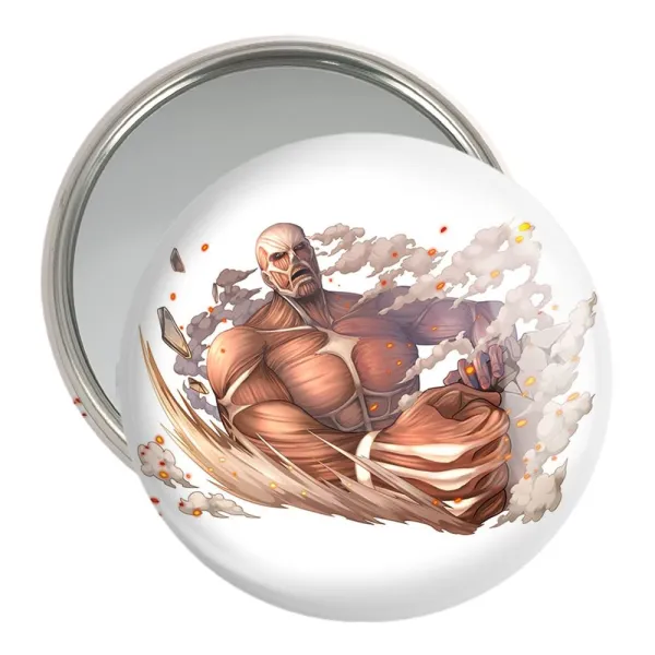 آینه های جیبی تایتان انیمه اتک آن تایتان Attack on Titan خندالو دایره ای به قطر 7.5 سانتی متر می باشد که نه خیلی بزرگ و غیر قابل استفاده در کیف آرایشی ست و نه خیلی کوچک که تصویر خاصی در آن مشاهده نشود. سایزی استاندارد و کارآمد دارد و مناسب قرار گیری در کیف لوازم آرایش و کیف های کوچک دستی نیز هست. بدنه ی آینه جیبی تایتان انیمه اتک آن تایتان Attack on Titan در قسمتی که آینه را در بر گرفته فلزی بوده و ظاهر براق و بسیار زیبایی دارد. چاپ طرح در پشت آینه بوسیله چاپگرهای دیجیتال شش رنگ با شفافیت و کیفیتی مثال زدنی انجام گرفته و با روکش لمینت حرارتی پوشیده شده که در مقابل آسیب و خط و خش مقاوم بوده و کیفیت بالایی دارد. آینه های جیبی تایتان انیمه اتک آن تایتان Attack on Titan خندالو با تنوع طرحی بسیار بالا، سلیقه هر نوع مخاطبی را تامین میکند.