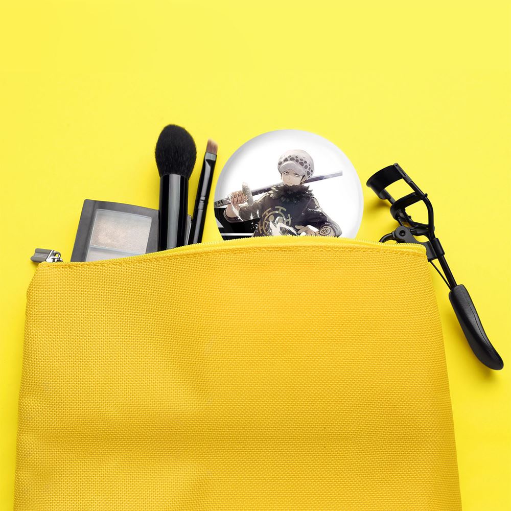 آینه های جیبی ترافلگر انیمه One Piece خندالو دایره ای به قطر 7.5 سانتی متر می باشد که نه خیلی بزرگ و غیر قابل استفاده در کیف آرایشی ست و نه خیلی کوچک که تصویر خاصی در آن مشاهده نشود. سایزی استاندارد و کارآمد دارد و مناسب قرار گیری در کیف لوازم آرایش و کیف های کوچک دستی نیز هست. بدنه ی آینه جیبی ترافلگر انیمه One Piece در قسمتی که آینه را در بر گرفته فلزی بوده و ظاهر براق و بسیار زیبایی دارد. چاپ طرح در پشت آینه بوسیله چاپگرهای دیجیتال شش رنگ با شفافیت و کیفیتی مثال زدنی انجام گرفته و با روکش لمینت حرارتی پوشیده شده که در مقابل آسیب و خط و خش مقاوم بوده و کیفیت بالایی دارد. آینه های جیبی ترافلگر انیمه One Piece خندالو با تنوع طرحی بسیار بالا، سلیقه هر نوع مخاطبی را تامین میکند.