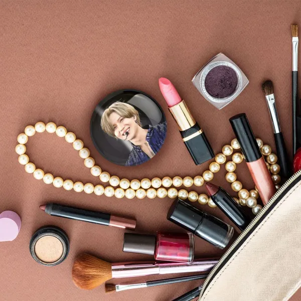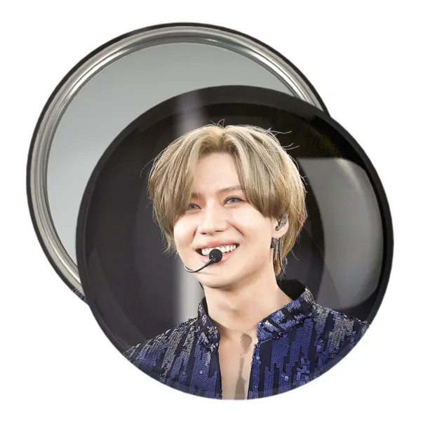 آینه های جیبی تمین گروه شاینی Shinee خندالو دایره ای به قطر 7.5 سانتی متر می باشد که نه خیلی بزرگ و غیر قابل استفاده در کیف آرایشی ست و نه خیلی کوچک که تصویر خاصی در آن مشاهده نشود. سایزی استاندارد و کارآمد دارد و مناسب قرار گیری در کیف لوازم آرایش و کیف های کوچک دستی نیز هست.