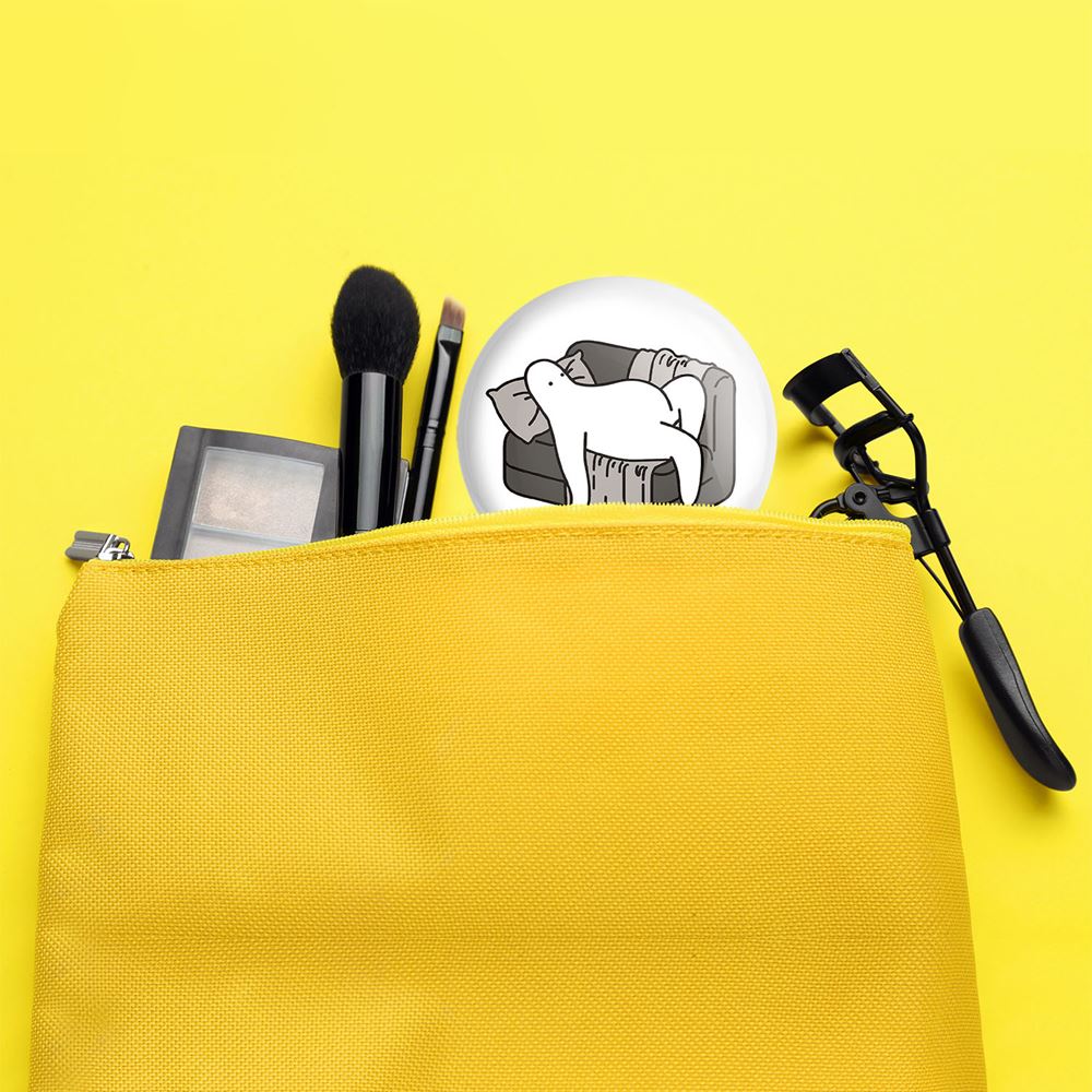 آینه های جیبی تنبل خسته خندالو دایره ای به قطر 7.5 سانتی متر می باشد که نه خیلی بزرگ و غیر قابل استفاده در کیف آرایشی ست و نه خیلی کوچک که تصویر خاصی در آن مشاهده نشود. سایزی استاندارد و کارآمد دارد و مناسب قرار گیری در کیف لوازم آرایش و کیف های کوچک دستی نیز هست.