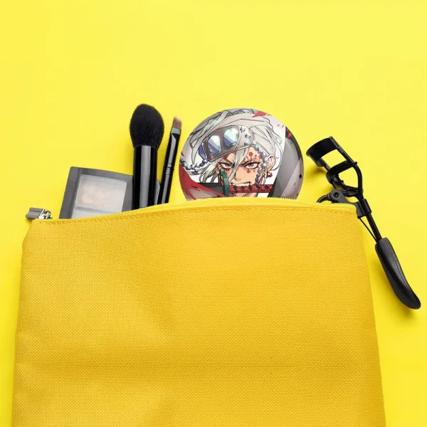 آینه های جیبی تنگن اوزویی انیمه شیطان کش خندالو دایره ای به قطر 7.5 سانتی متر می باشد که نه خیلی بزرگ و غیر قابل استفاده در کیف آرایشی ست و نه خیلی کوچک که تصویر خاصی در آن مشاهده نشود. سایزی استاندارد و کارآمد دارد و مناسب قرار گیری در کیف لوازم آرایش و کیف های کوچک دستی نیز هست.