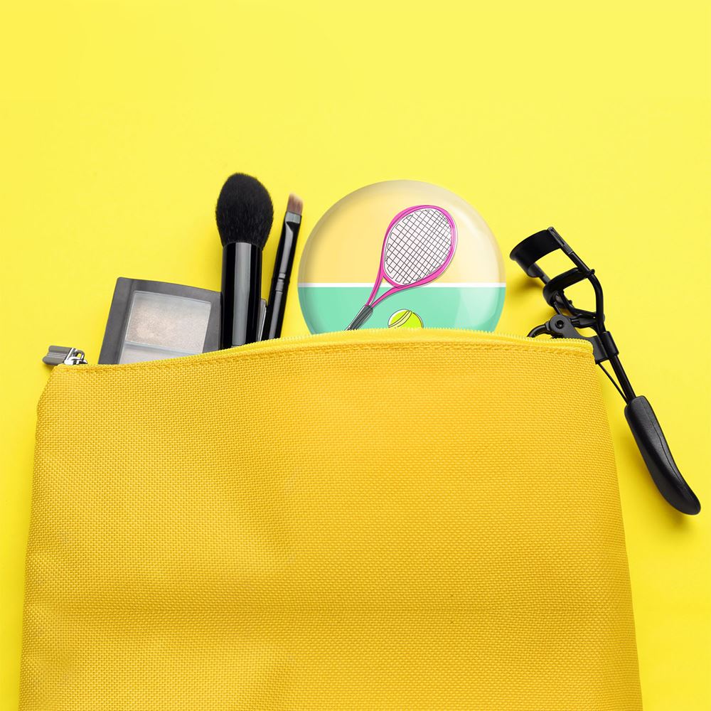 آینه های جیبی تنیس Tennis خندالو دایره ای به قطر 7.5 سانتی متر می باشد که نه خیلی بزرگ و غیر قابل استفاده در کیف آرایشی ست و نه خیلی کوچک که تصویر خاصی در آن مشاهده نشود. سایزی استاندارد و کارآمد دارد و مناسب قرار گیری در کیف لوازم آرایش و کیف های کوچک دستی نیز هست.