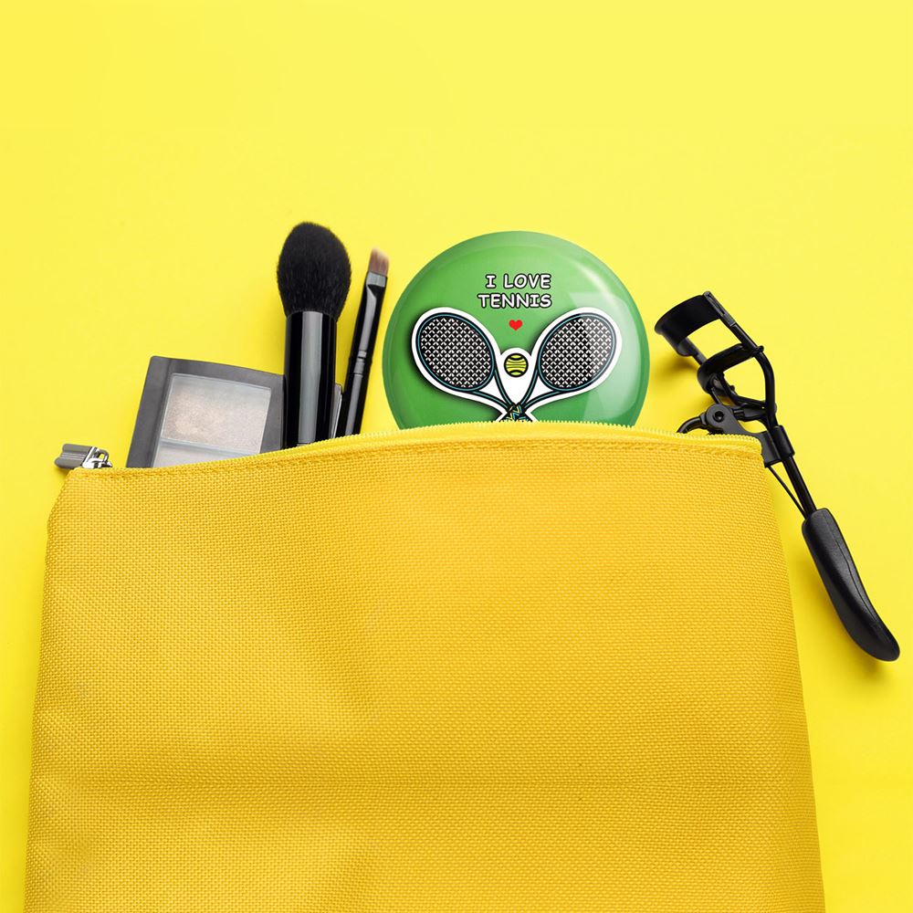 آینه های جیبی تنیس Tennis خندالو دایره ای به قطر 7.5 سانتی متر می باشد که نه خیلی بزرگ و غیر قابل استفاده در کیف آرایشی ست و نه خیلی کوچک که تصویر خاصی در آن مشاهده نشود. سایزی استاندارد و کارآمد دارد و مناسب قرار گیری در کیف لوازم آرایش و کیف های کوچک دستی نیز هست.