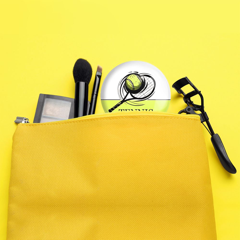 آینه های جیبی تنیس Tennis خندالو دایره ای به قطر 7.5 سانتی متر می باشد که نه خیلی بزرگ و غیر قابل استفاده در کیف آرایشی ست و نه خیلی کوچک که تصویر خاصی در آن مشاهده نشود. سایزی استاندارد و کارآمد دارد و مناسب قرار گیری در کیف لوازم آرایش و کیف های کوچک دستی نیز هست.