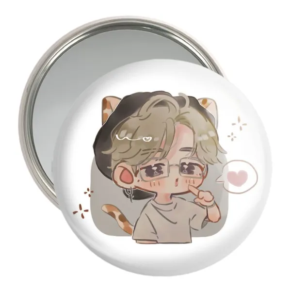 آینه های جیبی تهیونگ Taehyung گروه بی تی اس BTS خندالو دایره ای به قطر 7.5 سانتی متر می باشد که نه خیلی بزرگ و غیر قابل استفاده در کیف آرایشی ست و نه خیلی کوچک که تصویر خاصی در آن مشاهده نشود. سایزی استاندارد و کارآمد دارد و مناسب قرار گیری در کیف لوازم آرایش و کیف های کوچک دستی نیز هست.