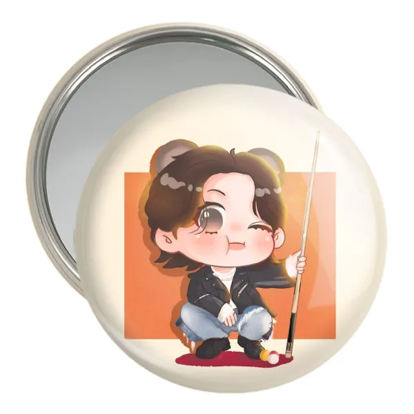 آینه های جیبی تهیونگ Taehyung گروه بی تی اس BTS خندالو دایره ای به قطر 7.5 سانتی متر می باشد که نه خیلی بزرگ و غیر قابل استفاده در کیف آرایشی ست و نه خیلی کوچک که تصویر خاصی در آن مشاهده نشود. سایزی استاندارد و کارآمد دارد و مناسب قرار گیری در کیف لوازم آرایش و کیف های کوچک دستی نیز هست.