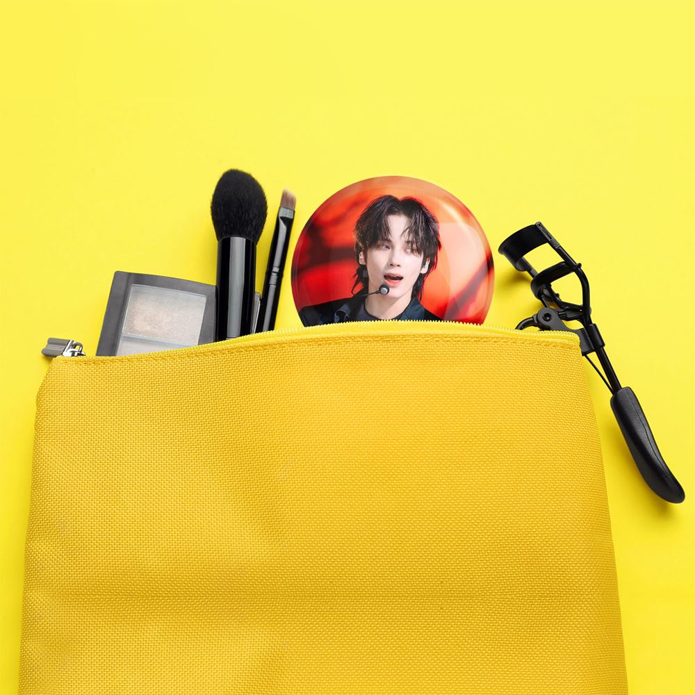 آینه های جیبی تهیون گروه تی اکس تی TXT خندالو دایره ای به قطر 7.5 سانتی متر می باشد که نه خیلی بزرگ و غیر قابل استفاده در کیف آرایشی ست و نه خیلی کوچک که تصویر خاصی در آن مشاهده نشود. سایزی استاندارد و کارآمد دارد و مناسب قرار گیری در کیف لوازم آرایش و کیف های کوچک دستی نیز هست.