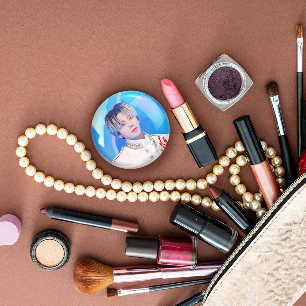 آینه های جیبی تهیون گروه تی اکس تی TXT خندالو دایره ای به قطر 7.5 سانتی متر می باشد که نه خیلی بزرگ و غیر قابل استفاده در کیف آرایشی ست و نه خیلی کوچک که تصویر خاصی در آن مشاهده نشود. سایزی استاندارد و کارآمد دارد و مناسب قرار گیری در کیف لوازم آرایش و کیف های کوچک دستی نیز هست.