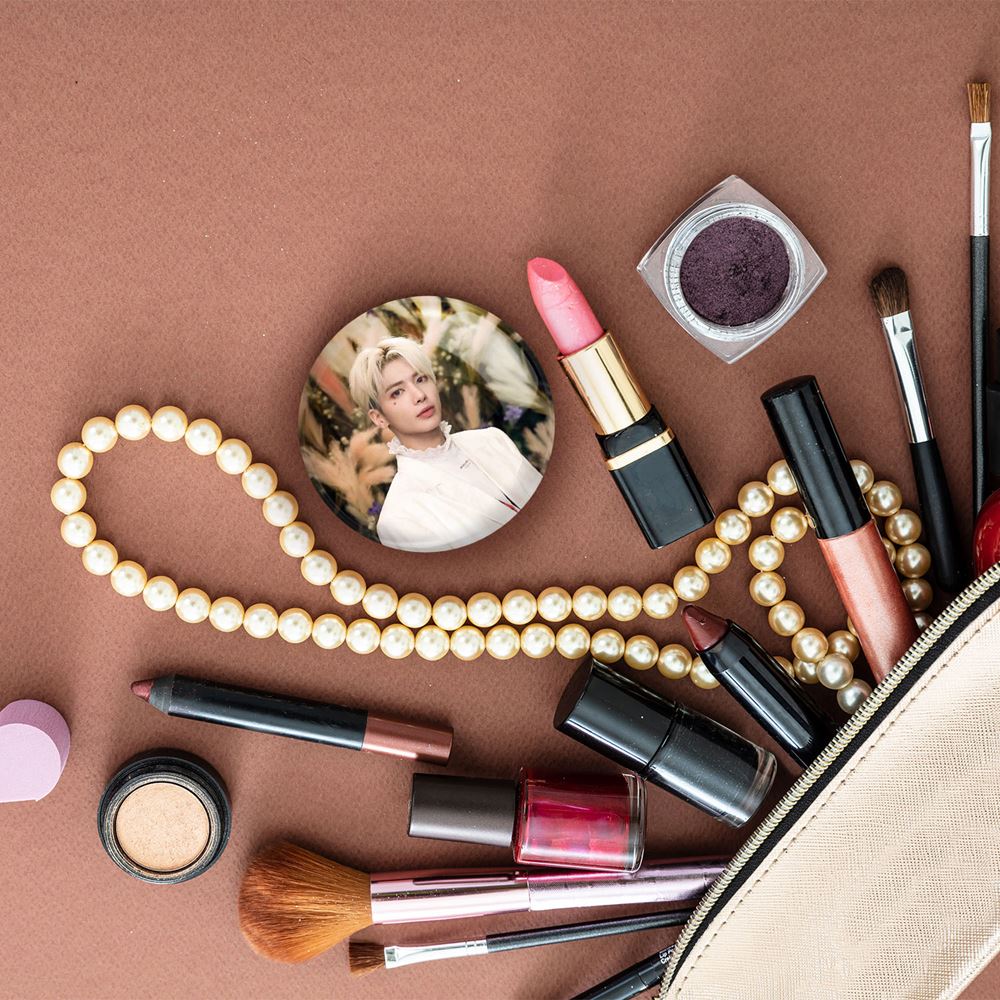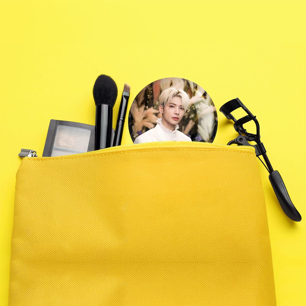 آینه های جیبی تهیون گروه تی اکس تی TXT خندالو دایره ای به قطر 7.5 سانتی متر می باشد که نه خیلی بزرگ و غیر قابل استفاده در کیف آرایشی ست و نه خیلی کوچک که تصویر خاصی در آن مشاهده نشود. سایزی استاندارد و کارآمد دارد و مناسب قرار گیری در کیف لوازم آرایش و کیف های کوچک دستی نیز هست.