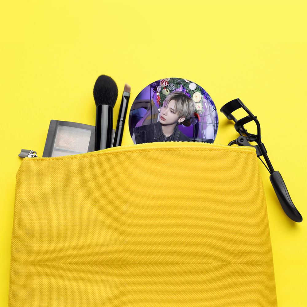 آینه های جیبی تهیون گروه تی اکس تی TXT خندالو دایره ای به قطر 7.5 سانتی متر می باشد که نه خیلی بزرگ و غیر قابل استفاده در کیف آرایشی ست و نه خیلی کوچک که تصویر خاصی در آن مشاهده نشود. سایزی استاندارد و کارآمد دارد و مناسب قرار گیری در کیف لوازم آرایش و کیف های کوچک دستی نیز هست.