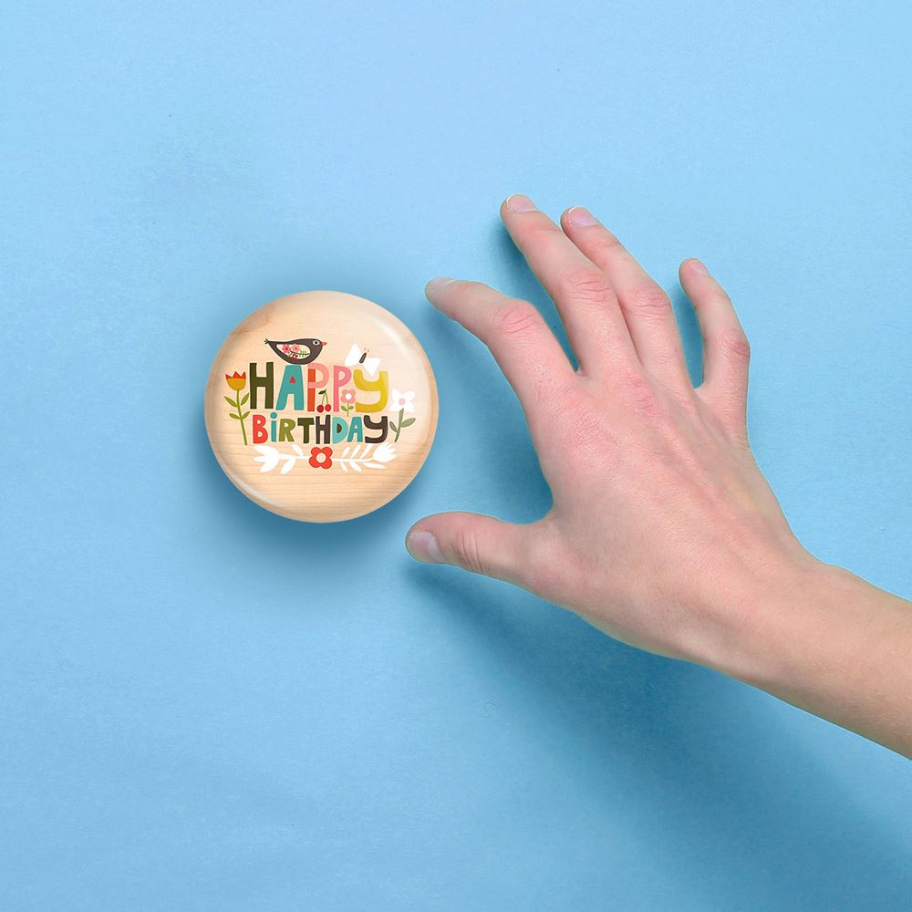 آینه های جیبی تولدت مبارک خندالو دایره ای به قطر 7.5 سانتی متر می باشد که نه خیلی بزرگ و غیر قابل استفاده در کیف آرایشی ست و نه خیلی کوچک که تصویر خاصی در آن مشاهده نشود. سایزی استاندارد و کارآمد دارد و مناسب قرار گیری در کیف لوازم آرایش و کیف های کوچک دستی نیز هست.