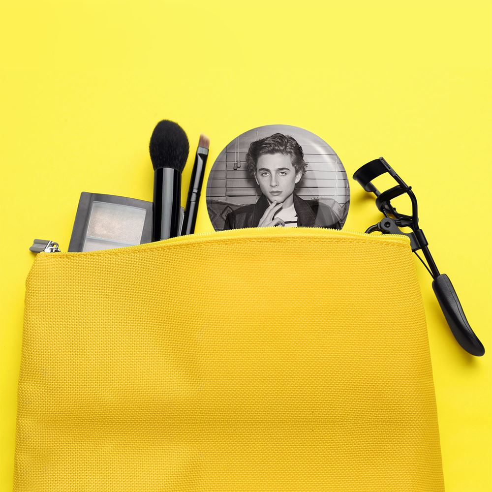 آینه های جیبی تیموتی شالامی Timothée Chalamet خندالو دایره ای به قطر 7.5 سانتی متر می باشد که نه خیلی بزرگ و غیر قابل استفاده در کیف آرایشی ست و نه خیلی کوچک که تصویر خاصی در آن مشاهده نشود. سایزی استاندارد و کارآمد دارد و مناسب قرار گیری در کیف لوازم آرایش و کیف های کوچک دستی نیز هست. بدنه ی آینه جیبی تیموتی شالامی Timothée Chalamet در قسمتی که آینه را در بر گرفته فلزی بوده و ظاهر براق و بسیار زیبایی دارد. چاپ طرح در پشت آینه بوسیله چاپگرهای دیجیتال شش رنگ با شفافیت و کیفیتی مثال زدنی انجام گرفته و با روکش لمینت حرارتی پوشیده شده که در مقابل آسیب و خط و خش مقاوم بوده و کیفیت بالایی دارد. آینه های جیبی تیموتی شالامی Timothée Chalamet خندالو با تنوع طرحی بسیار بالا، سلیقه هر نوع مخاطبی را تامین میکند.