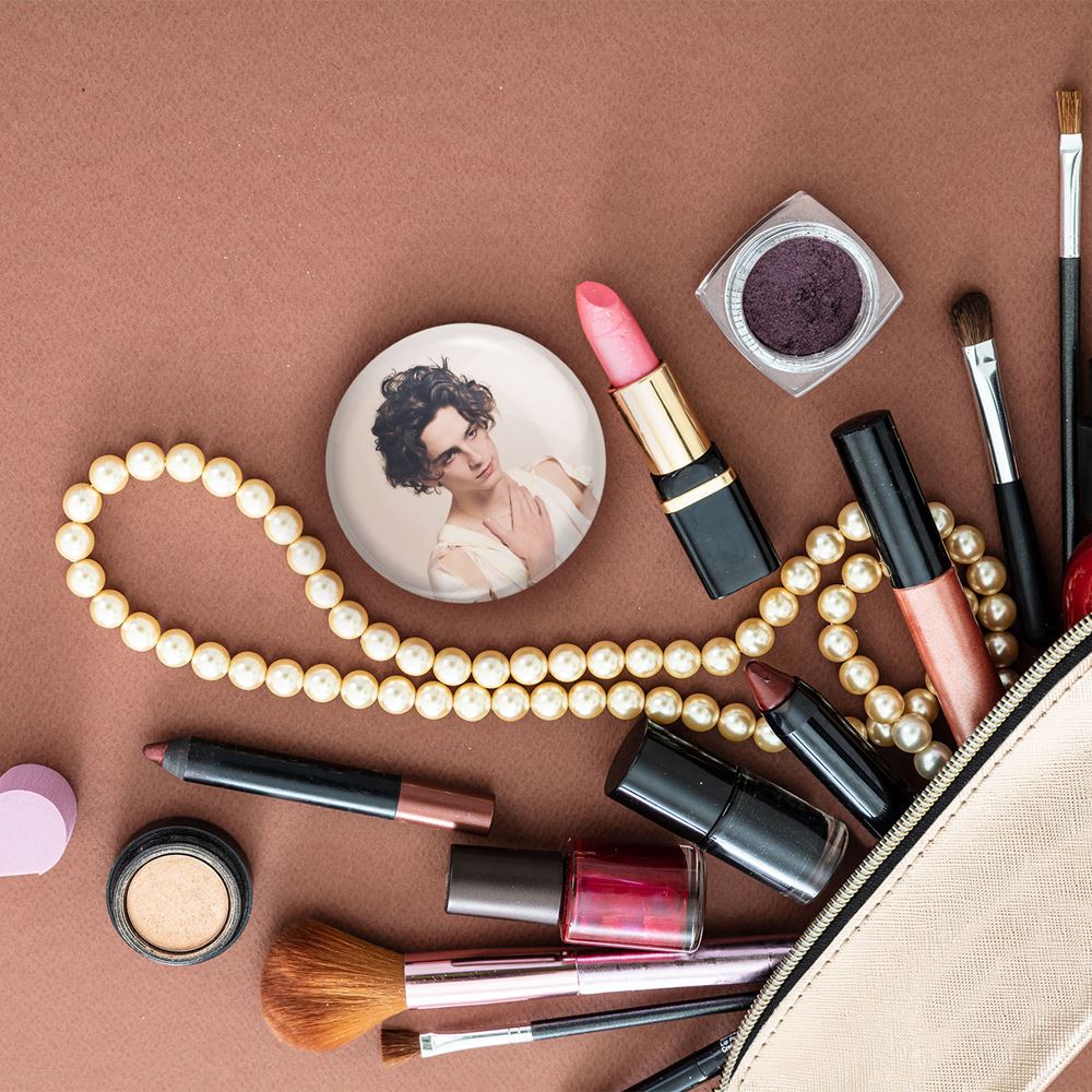 آینه های جیبی تیموتی شالامی Timothée Chalamet خندالو دایره ای به قطر 7.5 سانتی متر می باشد که نه خیلی بزرگ و غیر قابل استفاده در کیف آرایشی ست و نه خیلی کوچک که تصویر خاصی در آن مشاهده نشود. سایزی استاندارد و کارآمد دارد و مناسب قرار گیری در کیف لوازم آرایش و کیف های کوچک دستی نیز هست. بدنه ی آینه جیبی تیموتی شالامی Timothée Chalamet در قسمتی که آینه را در بر گرفته فلزی بوده و ظاهر براق و بسیار زیبایی دارد. چاپ طرح در پشت آینه بوسیله چاپگرهای دیجیتال شش رنگ با شفافیت و کیفیتی مثال زدنی انجام گرفته و با روکش لمینت حرارتی پوشیده شده که در مقابل آسیب و خط و خش مقاوم بوده و کیفیت بالایی دارد. آینه های جیبی تیموتی شالامی Timothée Chalamet خندالو با تنوع طرحی بسیار بالا، سلیقه هر نوع مخاطبی را تامین میکند.