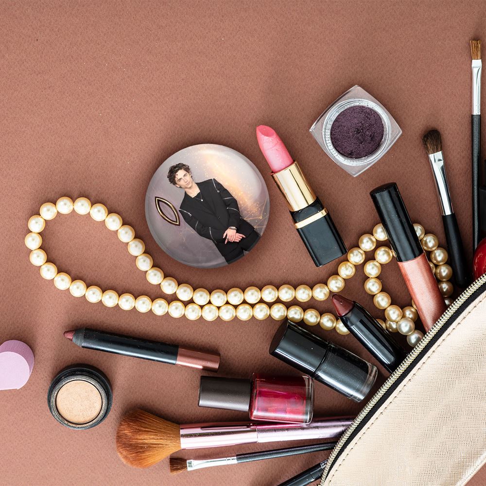 آینه های جیبی تیموتی شالامی Timothée Chalamet خندالو دایره ای به قطر 7.5 سانتی متر می باشد که نه خیلی بزرگ و غیر قابل استفاده در کیف آرایشی ست و نه خیلی کوچک که تصویر خاصی در آن مشاهده نشود. سایزی استاندارد و کارآمد دارد و مناسب قرار گیری در کیف لوازم آرایش و کیف های کوچک دستی نیز هست. بدنه ی آینه جیبی تیموتی شالامی Timothée Chalamet در قسمتی که آینه را در بر گرفته فلزی بوده و ظاهر براق و بسیار زیبایی دارد. چاپ طرح در پشت آینه بوسیله چاپگرهای دیجیتال شش رنگ با شفافیت و کیفیتی مثال زدنی انجام گرفته و با روکش لمینت حرارتی پوشیده شده که در مقابل آسیب و خط و خش مقاوم بوده و کیفیت بالایی دارد. آینه های جیبی تیموتی شالامی Timothée Chalamet خندالو با تنوع طرحی بسیار بالا، سلیقه هر نوع مخاطبی را تامین میکند.
