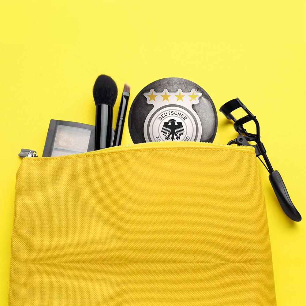 آینه های جیبی تیم ملی آلمان خندالو دایره ای به قطر 7.5 سانتی متر می باشد که نه خیلی بزرگ و غیر قابل استفاده در کیف آرایشی ست و نه خیلی کوچک که تصویر خاصی در آن مشاهده نشود. سایزی استاندارد و کارآمد دارد و مناسب قرار گیری در کیف لوازم آرایش و کیف های کوچک دستی نیز هست. بدنه ی آینه جیبی تیم ملی آلمان در قسمتی که آینه را در بر گرفته فلزی بوده و ظاهر براق و بسیار زیبایی دارد. چاپ طرح در پشت آینه بوسیله چاپگرهای دیجیتال شش رنگ با شفافیت و کیفیتی مثال زدنی انجام گرفته و با روکش لمینت حرارتی پوشیده شده که در مقابل آسیب و خط و خش مقاوم بوده و کیفیت بالایی دارد. آینه های جیبی تیم ملی آلمان خندالو با تنوع طرحی بسیار بالا، سلیقه هر نوع مخاطبی را تامین میکند.