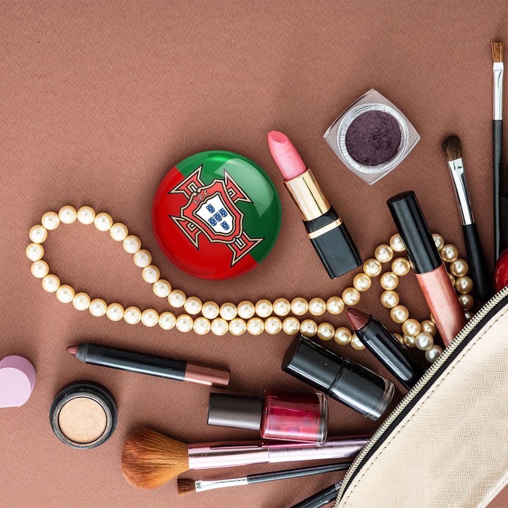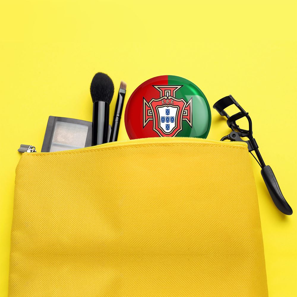 آینه های جیبی تیم ملی پرتغال خندالو دایره ای به قطر 7.5 سانتی متر می باشد که نه خیلی بزرگ و غیر قابل استفاده در کیف آرایشی ست و نه خیلی کوچک که تصویر خاصی در آن مشاهده نشود. سایزی استاندارد و کارآمد دارد و مناسب قرار گیری در کیف لوازم آرایش و کیف های کوچک دستی نیز هست. بدنه ی آینه جیبی تیم ملی پرتغال در قسمتی که آینه را در بر گرفته فلزی بوده و ظاهر براق و بسیار زیبایی دارد. چاپ طرح در پشت آینه بوسیله چاپگرهای دیجیتال شش رنگ با شفافیت و کیفیتی مثال زدنی انجام گرفته و با روکش لمینت حرارتی پوشیده شده که در مقابل آسیب و خط و خش مقاوم بوده و کیفیت بالایی دارد. آینه های جیبی تیم ملی پرتغال خندالو با تنوع طرحی بسیار بالا، سلیقه هر نوع مخاطبی را تامین میکند.
