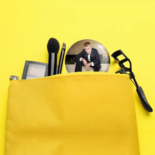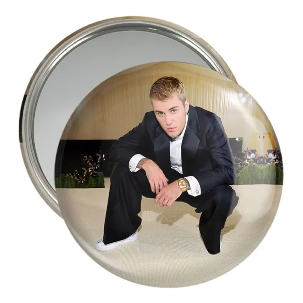 آینه های جیبی جاستین بیبر Justin Bieber خندالو دایره ای به قطر 7.5 سانتی متر می باشد که نه خیلی بزرگ و غیر قابل استفاده در کیف آرایشی ست و نه خیلی کوچک که تصویر خاصی در آن مشاهده نشود. سایزی استاندارد و کارآمد دارد و مناسب قرار گیری در کیف لوازم آرایش و کیف های کوچک دستی نیز هست.