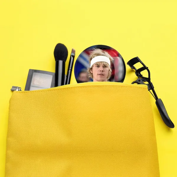 آینه های جیبی جاستین بیبر Justin Bieber خندالو دایره ای به قطر 7.5 سانتی متر می باشد که نه خیلی بزرگ و غیر قابل استفاده در کیف آرایشی ست و نه خیلی کوچک که تصویر خاصی در آن مشاهده نشود. سایزی استاندارد و کارآمد دارد و مناسب قرار گیری در کیف لوازم آرایش و کیف های کوچک دستی نیز هست.